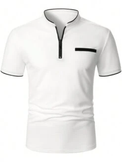 Manfinity Homme Men Contrast Collar Pocket Patched Polo Shirt