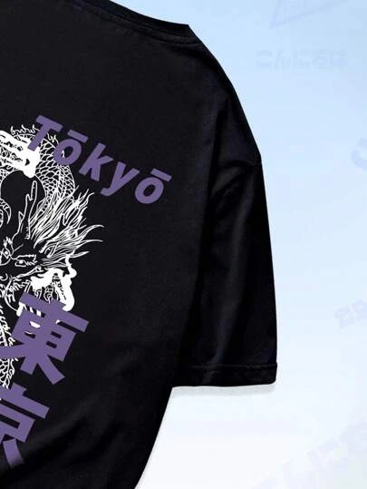 Anime Guys Dragon Print Tee