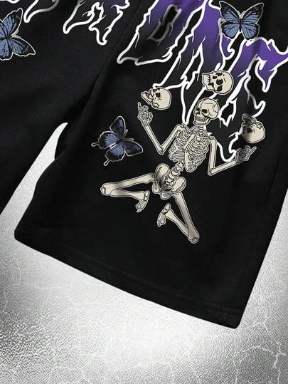 Be the first to review “Goth Guys Letter & Skeleton Print Drawstring Waist Shorts” Cancel reply