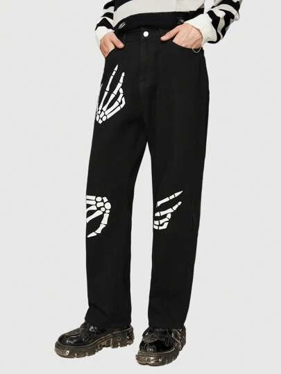 Be the first to review “Grunge Punk Guys Skeleton Hand Print Straight Leg Jeans” Cancel reply