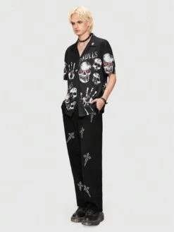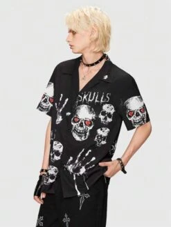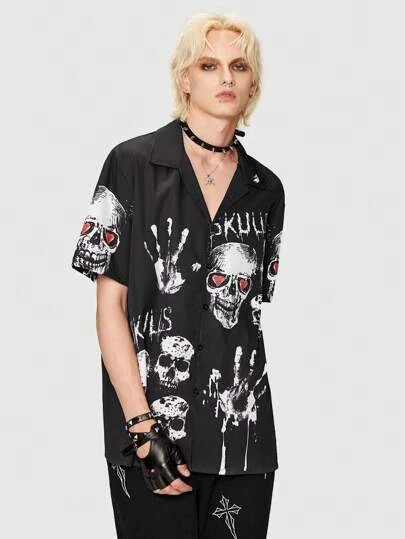 Be the first to review “Grunge Punk Guys Skull & Letter Graphic Shirt” Cancel reply