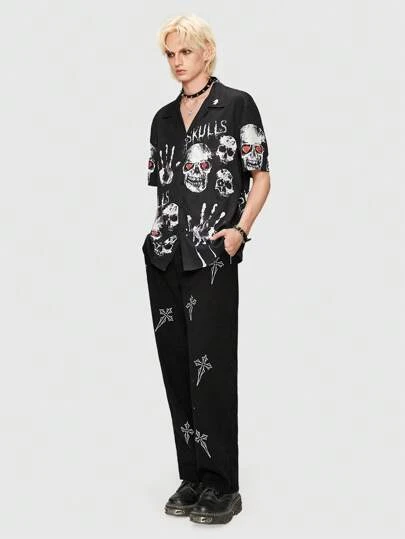 Grunge Punk Guys Skull & Letter Graphic Shirt