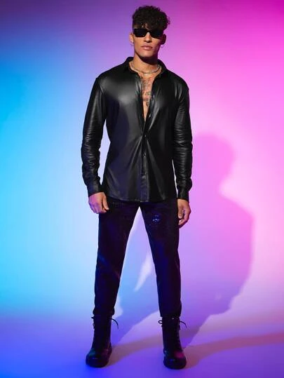 Manfinity AFTRDRK Men Solid Button Front Shirt