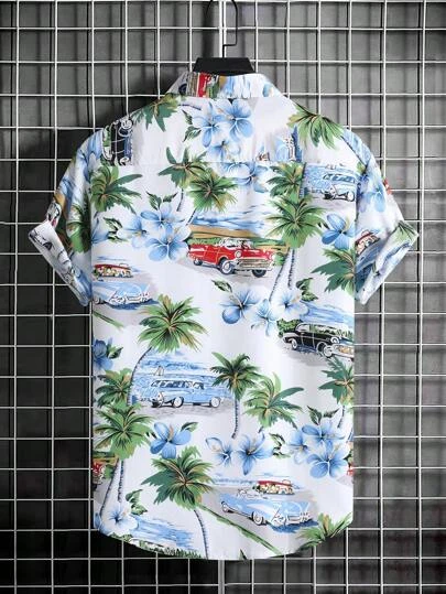 Manfinity Chillmode Men Random Car & Palm Tree Print Shirt Without Tee