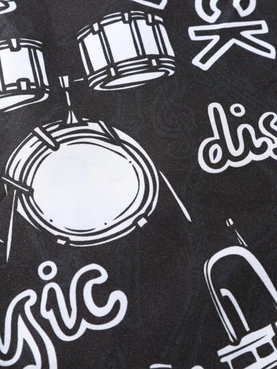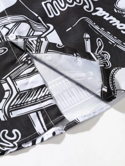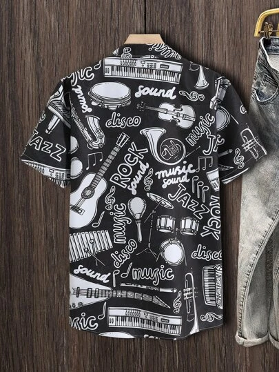 Manfinity EMRG Men 1pc Random Musical Instrument & Letter Graphic Button Up Shirt