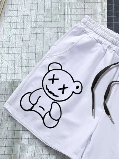 Manfinity EMRG Men Bear Print Drawstring Waist Shorts