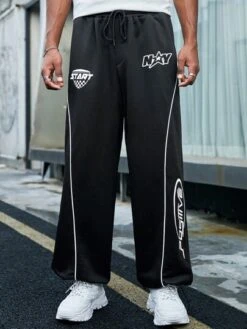 Be the first to review “Manfinity EMRG Men Letter Graphic Contrast Piping Drawstring Waist Sweatpants” Cancel reply