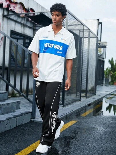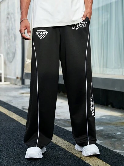 Manfinity EMRG Men Letter Graphic Contrast Piping Drawstring Waist Sweatpants