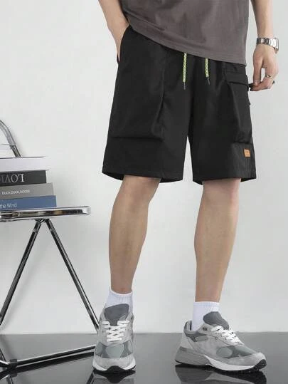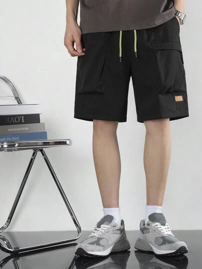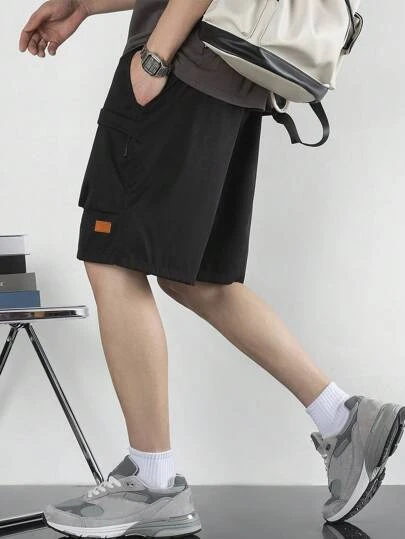 Manfinity EMRG Men Letter Patched Detail Zipper Pocket Drawstring Waist Shorts