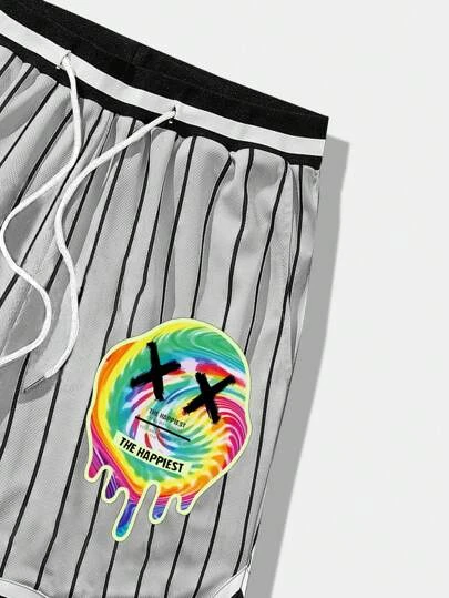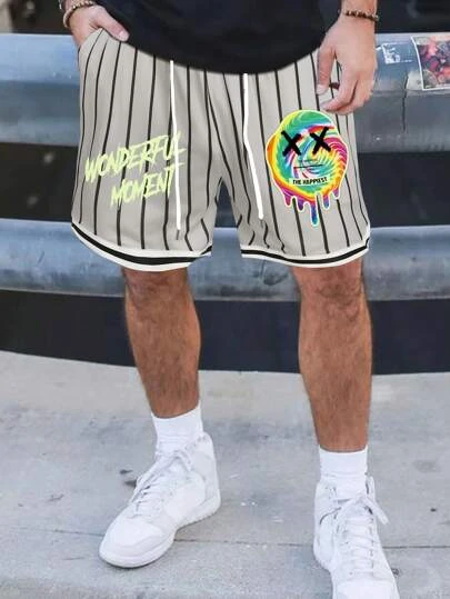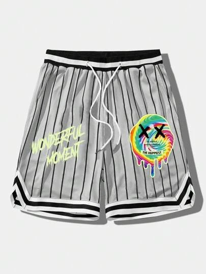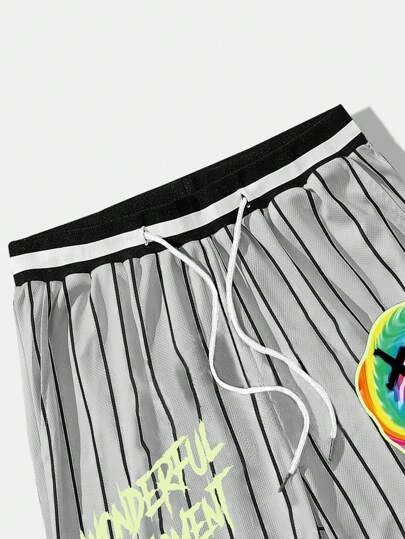 Manfinity EMRG Men Striped & Letter Graphic Drawstring Waist Shorts