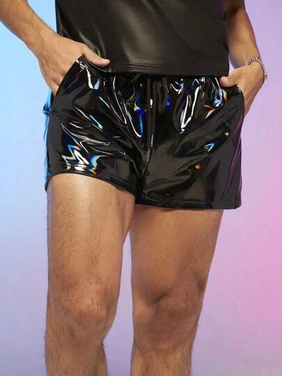 Manfinity Fever City Men Holographic Drawstring Waist Shorts