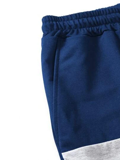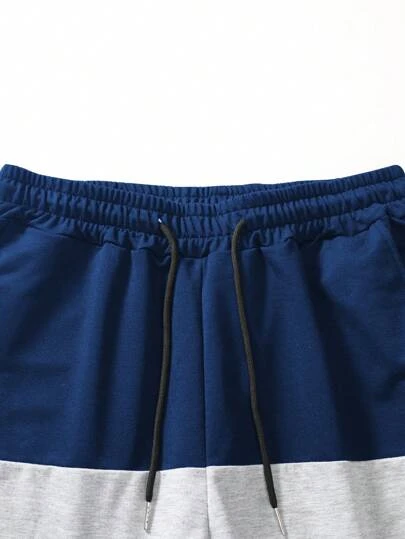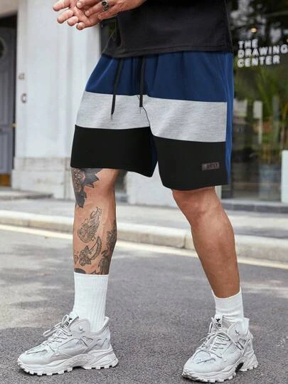 Manfinity Homme Men Colorblock Letter Patched Detail Drawstring Waist Shorts