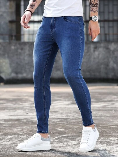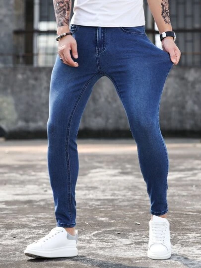 Manfinity Homme Men Cotton Bleach Wash Skinny Jeans
