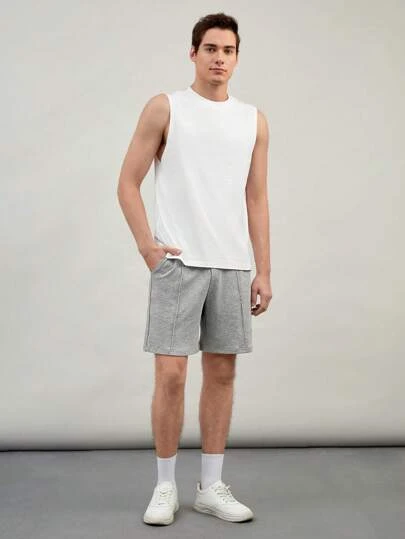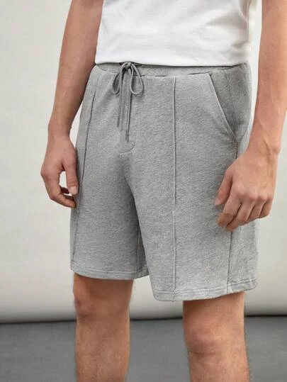 Manfinity Homme Men Cotton Drawstring Waist Seam Detail Shorts