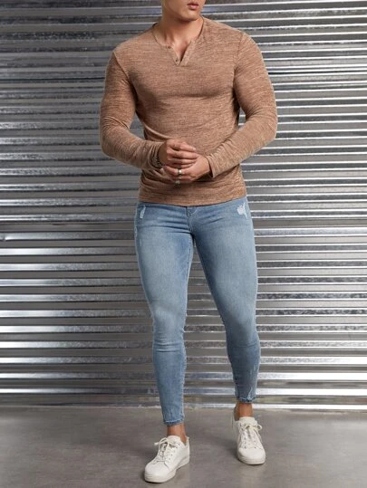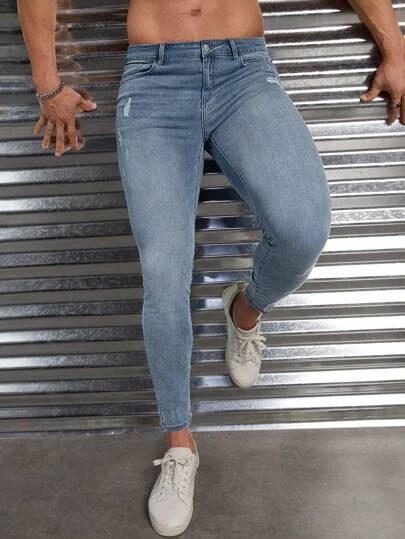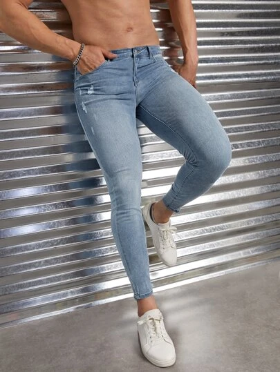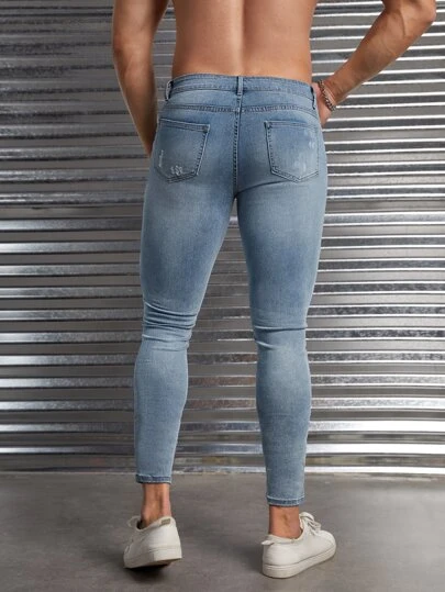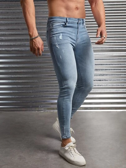 Manfinity Homme Men Cotton Ripped Skinny Jeans
