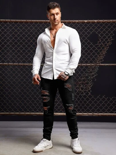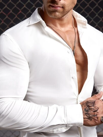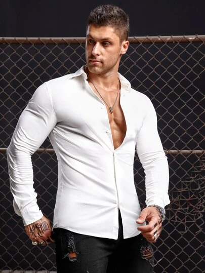 Manfinity Homme Men Cotton Solid Button Front Shirt