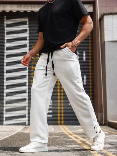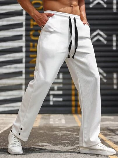 Manfinity Homme Men Drawstring Waist Slant Pocket Pants