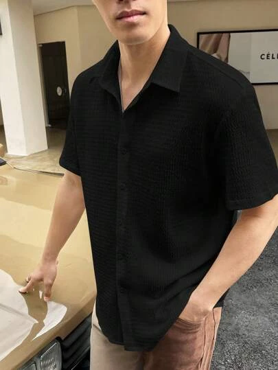 Manfinity Homme Men Drop Shoulder Button Front Shirt