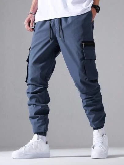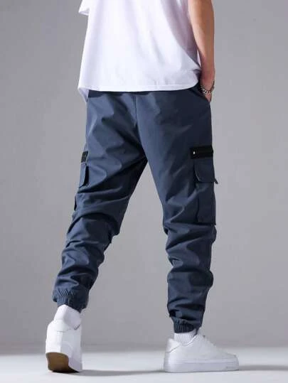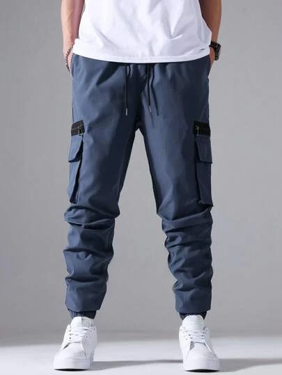 Manfinity Homme Men Flap Pocket Side Drawstring Waist Cargo Pants