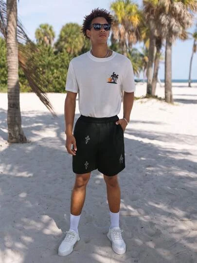 Manfinity Homme Men Graphic Print Slant Pocket Shorts