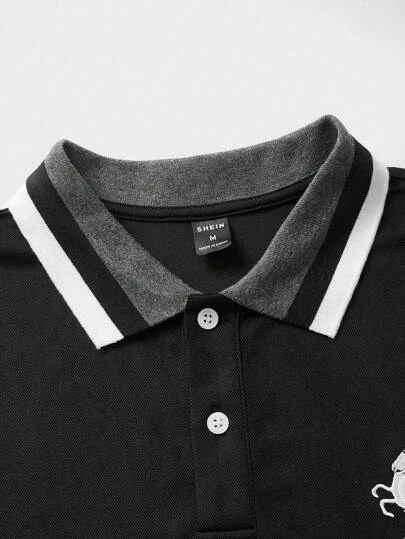 Manfinity Homme Men Horse Print Striped Trim Polo Shirt