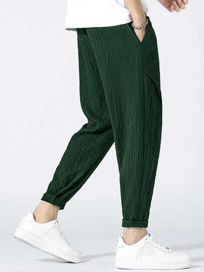 Manfinity Homme Men Solid Drawstring Waist Carrot Pants