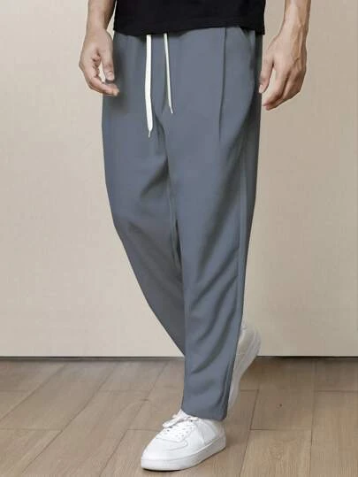 Manfinity Homme Men Solid Drawstring Waist Pants