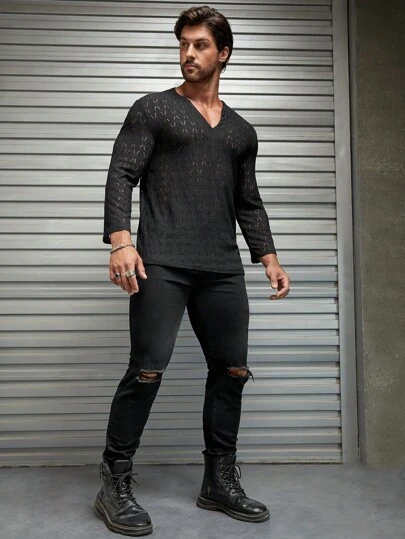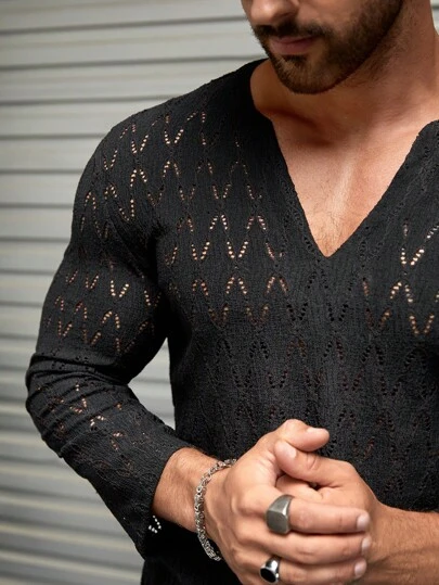 Manfinity Homme Men Solid Notched Neckline Shirt