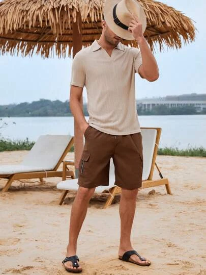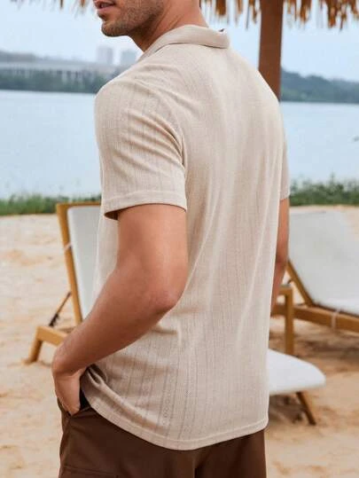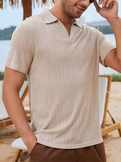 Manfinity Homme Men Solid Ribbed Knit Polo Shirt