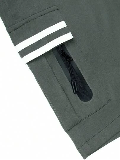 Manfinity Homme Men Striped Drawstring Waist Flap Pocket Side Shorts
