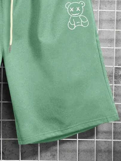 Manfinity Hypemode Men Bear Print Drawstring Waist Shorts