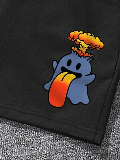 Manfinity Hypemode Men Cartoon Graphic Drawstring Waist Shorts