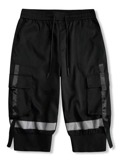 Manfinity Hypemode Men Contrast Tape Flap Pocket Drawstring Waist Cargo Pants