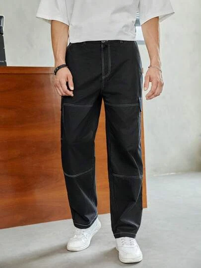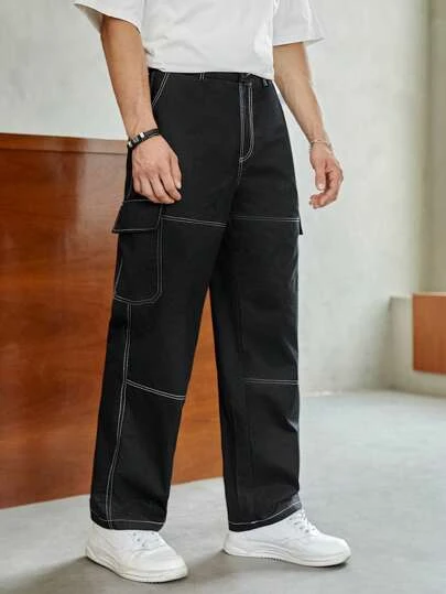 Manfinity Hypemode Men Cotton Top-stitching Flap Pocket Side Cargo Pants