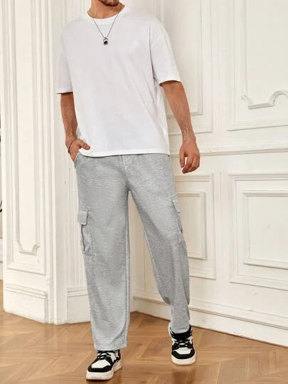 Manfinity Hypemode Men Flap Pocket Side Drawstring Waist Cargo Sweatpants