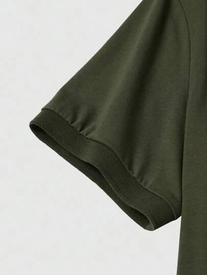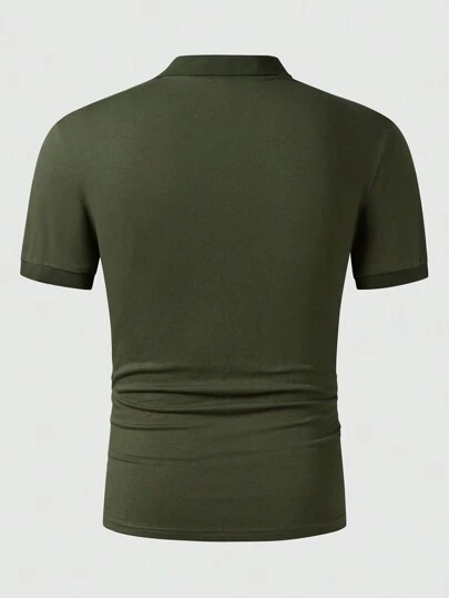 Manfinity Hypemode Men Contrast Collar Letter Patched Detail Drop Shoulder Polo Shirt