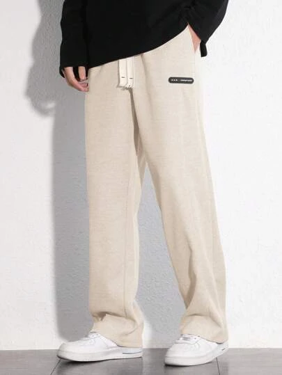 Manfinity Hypemode Men Letter Patched Detail Drawstring Waist Straight Leg Pants