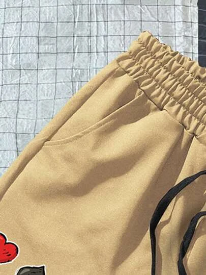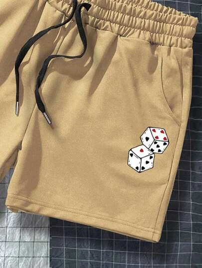 Manfinity Hypemode Men Playing Card Print Drawstring Waist Shorts