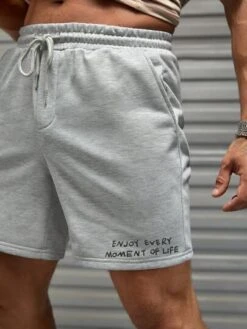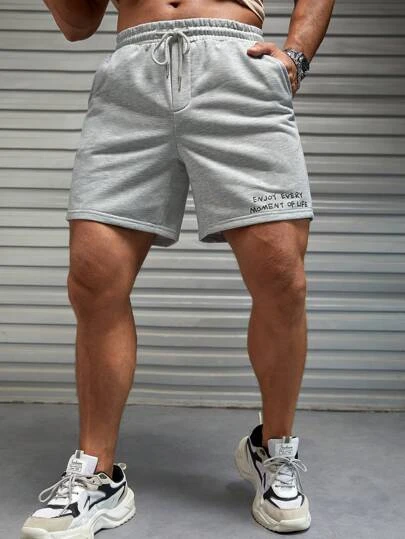 Manfinity Hypemode Men Slogan Graphic Drawstring Waist Shorts
