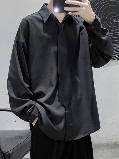 Manfinity Hypemode Men Solid Drop Shoulder Shirt Without Tie