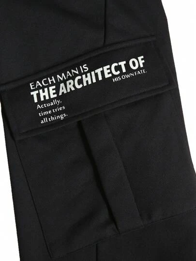 Manfinity LEGND Men Letter Graphic Flap Pocket Drawstring Waist Sweatpants