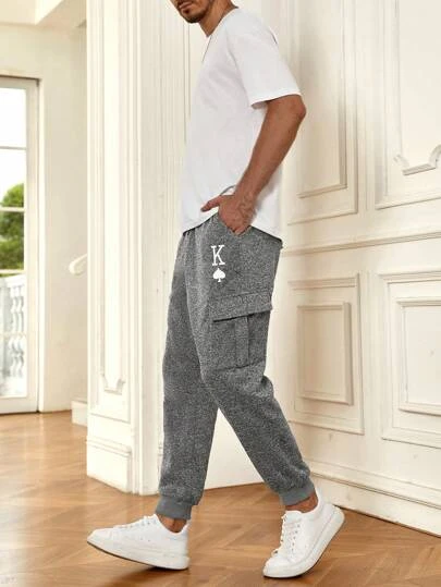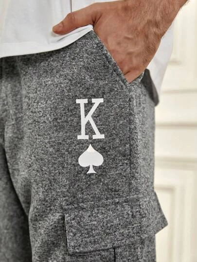 Manfinity LEGND Men Playing Card Print Flap Pocket Side Drawstring Waist Sweatpants