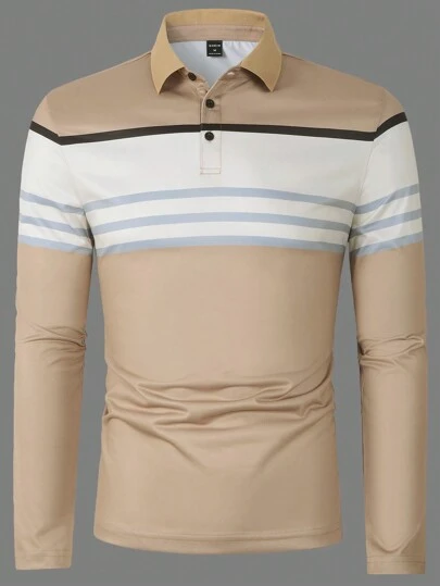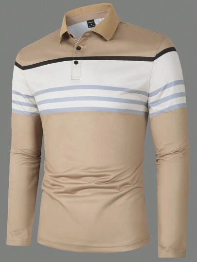 Manfinity Mode Men Striped Print Colorblock Polo Shirt