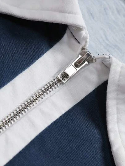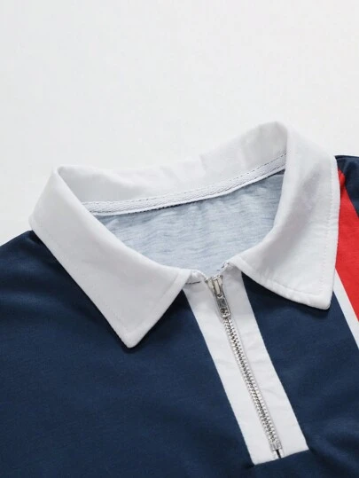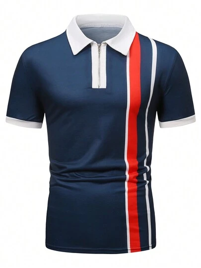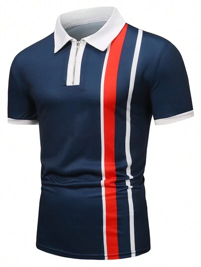 Manfinity Mode Men Striped Print Quarter Zip Polo Shirt