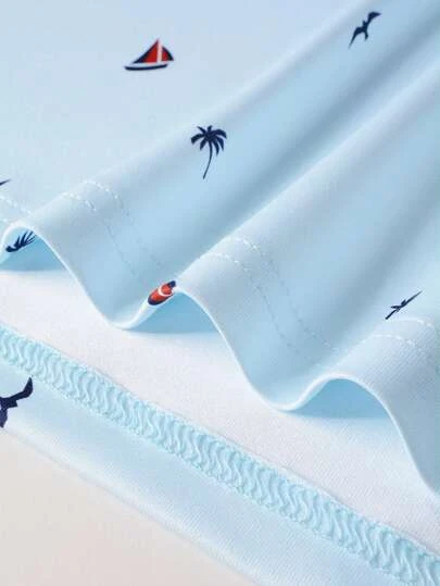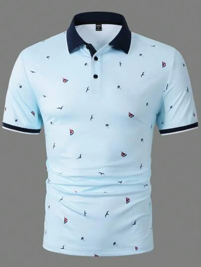 Manfinity RSRT Men Seagull & Coconut Tree Graphic Contrast Trim Polo Shirt