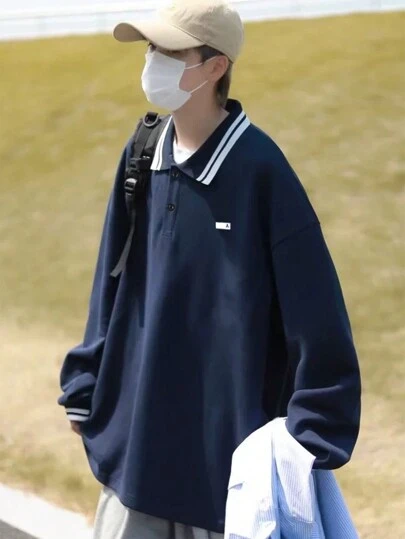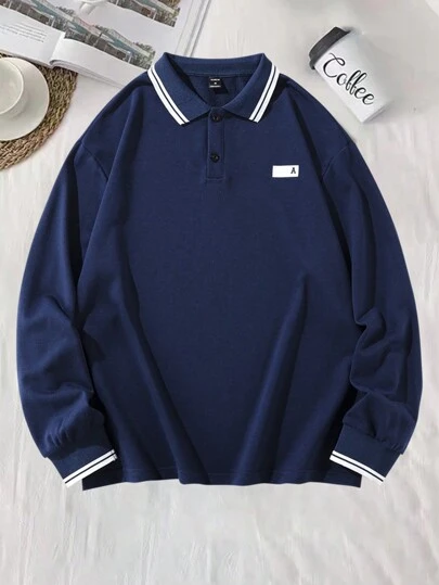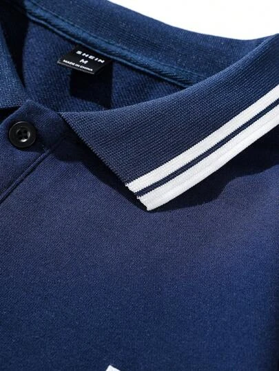 Manfinity Homme Men Letter Patch Detail Contrast Trim Polo Shirt