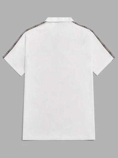 Manfinity Sporsity Men Plaid Letter Embroidery Contrast Side Seam Polo Shirt