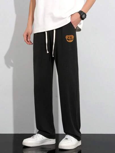 Men Bear Patched Drawstring Waist Pants