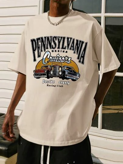 Men Car & Letter Graphic Tee