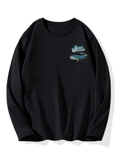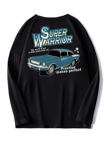 Men Car & Slogan Graphic Drop Shoulder Tee